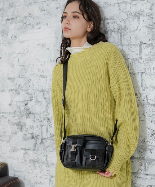コンパクトサイズのショルダーバッグ。小さいながらもマチもしっかりあり随所にポケットがデザインされ、収納力抜群の1点です。メインポケットはWジップ仕様で使いやすく、フロントはフラップポケットデザインでお荷物がこぼれないのもポイント。ショルダーの長さも調整できるのでシーンやスタイルに合わせてお使いいただけるアイテムです。