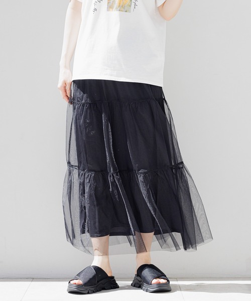 トレンドのティアードチュールスカート。ペチコートが取り外せてスカートとしてのスタイリングはもちろん、ペチコートを穿かずボトム合わせでチュールスカートをメインにしたスタイリングも〇レイヤード次第で幅広いスタイリングをお楽しみいただけるアイテムです。【素材】柔らかでキラキラとしたチュール素地を使用。【スタイリング】デニムやスラックスとレイヤードを楽しんでいただくのも今年らしくおすすめ。