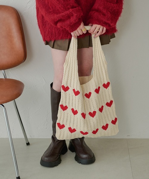 ハート×クロシェ編みニットで温かみ溢れるトートバッグ♡トレンドのハートが配色でアクセントになるニットトートバッグが登場!軽くて持ち運びやすくA4サイズもバッチリ入る大きさで様々なシーンで活躍します◎■point・ハート柄・ニット生地・配色カラー・A4サイズ■detail温かみのあるニット生地で柔らかい印象のトートバッグ。配色カラーのハート柄が周りと差がつくポイントに。軽くて持ち運びやすくA4サイズもバッチリ入る大きさで様々なシーンで活躍します◎また、持ち手は使いやすいように肩掛けもできる長さに設定しています。■fabric……………………透け感:なし厚さ:普通伸縮性:あり裏地:なしポケット:なし……………………※詳しいお手入れ方法は商品タグをご参照ください。■coordinateガーリーからカジュアルまで様々なコーデで使え、通勤通学などデイリーユーズにもぴったりなアイテムです♡AmbreNeigeとは...“淡色”をベースに心がほっこりするような暖かみのあるclosetを提案致します。※ご注意※・屋外の光や照明の当たり具合で、実際の商品の色味とカラー別画像の色味に若干の違いが発生する場合がございます。・詳細画像と併せてご確認の上、ご注文いただきますようお願い致します。※サイトに表示されているカラー名と実際のお届け商品に記載されているカラー名が異なる場合がございます。●お買い物をお得によりお楽しみいただく為に●▼商品のお気に入り登録&ブランドお気に入り登録▼ がおすすめです!♡をクリック完売カラーの再入荷通知や、ラスト1点の通知、プライスダウンしたセール通知も受け取ることができます。ブランドお気に入り登録もご一緒にお願い致します。