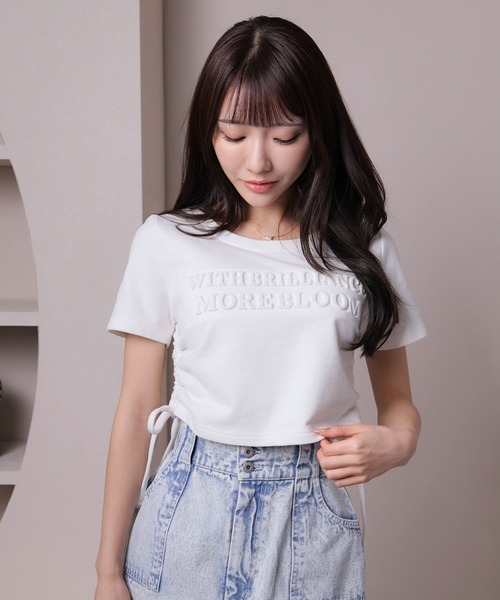 【point/coordinate】・クロップド丈でトレンド感があり着るだけでスタイルアップ。・立体感のあるエンボスのメッセージロゴ。・メッセージはエンボスでさり気ないから着やすい。・サイドはドロスト仕様で丈が調整できる。・華奢なリボンが女性らしい。・少しゆったりとしたサイズ感でラインが目立たない。・裾幅が広いので着たときにウエストが細見えする。・ラヴェンダーは淡いカラーアイテムで華やかな印象に。・カジュアルならワイドパンツやカーゴパンツ合わせがおすすめ。・スカート合わせで綺麗めに着るのも◎。【fabric】・柔らかい裏毛素材で着心地が良い。・毛玉になりにくい表面感。・厚すぎないので真夏でも着用可能。
