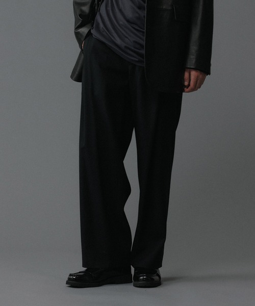 【ありそうで無い、秀逸なデザインが目を惹く一本】しなやかで品のある素材が織りなす、ADAM ET ROPE'らしい一本。 どんなスタイルにも馴染む汎用性も魅力です。 【素材】 世界三大毛織物産地である尾州にて織りから整理まで一貫して行い仕上げた特別な生地を使用。 染め糸を特殊な配列で組み合わせたことで無地ながら、独特なタテ筋を表現したサマーウール生地。 滑らかな風合いが特徴。 【ディティール・シルエット】 生地の柔らかく豊かな風合いを活かした、大胆な弧を描いたドレープが特徴のスラックス。 ワイドすぎないストレートシルエットで布の遊びが所作を上品な印象に見せてくれます。 ニットやシャツはもちろん、Tシャツなどカジュアルアイテムと崩した雰囲気での気張らないスタイリングがおすすめです。 【カラー】 『ベージュ』はくすんだメランジカラー、『ブラック』はソリッドでモードな印象にまとまっています。 【モデル情報】 男性:Height:182cm Chest:83cm Waist:72cm Hip:89cm Lサイズ着用 【推奨サイズ】 サイズM:身長~175cm サイズL:身長176cm~ ※標準体型を基にした目安になります。 -------------------------- 裏地:なし 光沢感:なし 透け感:なし ポケット:あり 伸縮性:なし 生地の厚さ:普通 --------------------------