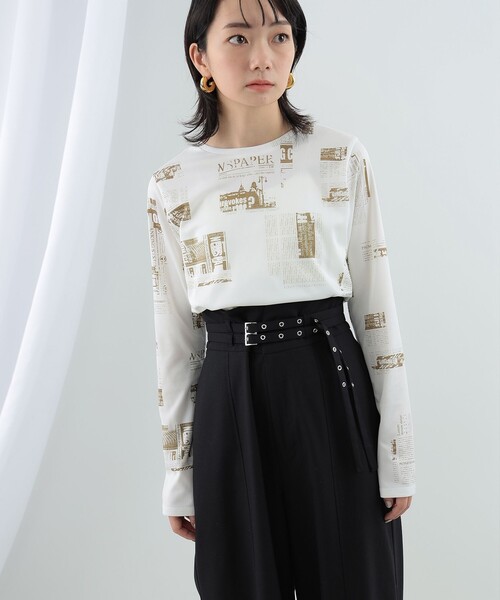 ヴィンテージ風デザインで個性を演出■デザイン〈Ray BEAMS(レイビームス)〉オリジナルのニュースペーパー柄をプリントしたトップス。柄の間隔やバランス、色に至るまでこだわって仕上げています。コーディネートのアクセントにもぴったりのひと品です。■コーディネート1枚ではもちろん、肌寒い時期はインナーとしてアウターの中から覗くように着用するのがおすすめ。同デザインのスカート(61-27-1071-370)とのセットアップも◎。■サイズ程よくゆとりのあるシルエット。■素材ツヤ感のあるスムース素材で、透けも少なく程よい厚みが特徴です。■ケア方法洗濯可(詳細は商品についている洗濯表示タグをご覧ください。)【BEIGE】BEAMS STAFF:H160 Size:ONE SIZE【BLUE】BEAMS STAFF:H162 Size:ONE SIZE※柄の出方には1点1点個体差があります。ご指定いただけませんので、予めご了承ください。※光の当たり具合やパソコンなどの閲覧環境によって、実際の色味と異なって見える場合がございます。予めご了承ください。※商品の色味は商品単体で撮影した画像をご参照ください。