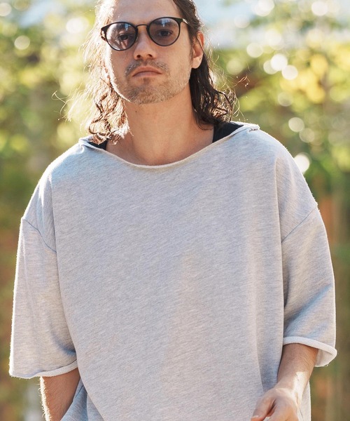 175cm B90-W73-H89 靴26.5cmのモデルがMサイズを着用。ミニ裏毛のスウェット生地を使用したワイドシルエットのスウェットトップス。首元もゆったりとさせることによって、リラックス感をプラス。タンクトップなどとのレイヤードスタイルも楽しめるアイテムです。※着用画像と商品単体画像で色が異なる場合がございます。※商品単体画像を実物により近づけております。