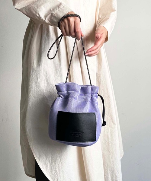 メッシュ素材を使用した巾着ショルダーバッグ。巾着型とメッシュ素材を使用し、フロント部分に合皮を合わせてスポーティーな雰囲気とスマートさも感じられるデザイン性の高いバッグ。メッシュ素材は軽量で通気性が高く、暑い季節にもぴったり!合皮のポケットは、小物整理に便利です。コンパクトなサイズながらも必要なアイテムはしっかり収納でき、様々なファッションスタイルに合わせて使える実用的なアイテム♪ショルダーストラップは調整可能◎サイズ本体:H21×W26×D17ショルダー分部:〜130㎝重さ:約100g※サイズと重さは商品ごとに誤差がございます。