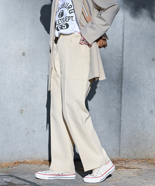 【2024SS】B.C STOCK大人カジュアルに欠かせないベイカーパンツ。ハリ感と表面の滑らかさのあるポリエステル素材を使ったストレートシルエットです。ベイカーの特徴的なスクエアポケットが、ワークパンツらしい要素も兼ね備えつつ女性らしくも着れるアイテム。センタープレスを入れたことで簡単に大人カジュアルな着こなしができます。キレイめに着回しができる3色のカラーバリエーションにて展開。洗濯機洗い(弱)可能で気軽にお手入れできるのも嬉しいポイントです。**********************透け感:ややあり(ナチュラルのみ)裏地:なし伸縮性:なし光沢感:なし生地の厚さ:普通**********************【スタッフ着用コメント】 《スタッフ staff.s》 身長:165cm/普段サイズ:M/着用サイズ:Mサイズ感:ウエストの後ろがゴムになっており、ジャストサイズで履けました。着丈はくるぶしにかかるくらいです。素材感:ややハリ感のある素材で、通勤にもデイリーにも使えそうです。着心地:ワタリ幅にゆとりがあり、リラックス感のある着心地です。※あくまで個人の感想です。 **********************※取り扱いについては、商品についている品質表示でご確認ください.。※こちらの商品は、B.C STOCKでの取り扱いになります。直接店舗へお問い合わせの際は B.C STOCK店舗へお願い致します。※照明の関係により、実際よりも色味が違って見える場合があります。またパソコン・スマートフォンなどの環境により、若干製品と画像のカラーが異なる場合もございます。※商品の色味は、商品アップ画像をご参照ください。着用スタッフ:163cm 着用サイズ:M詳細着用スタッフ:163cm 着用サイズ:M本体:洗濯機洗い(弱)