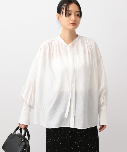 ーーー 細めのボウタイが上品な雰囲気に仕上げてくれるブラウス ーーー 【デザインと特徴】 肩と袖にたっぷりと入ったギャザーがフェミニンでデザイン感のある一枚となっています。 ボウタイは軽く結んでカジュアルに、リボン結びでレディな印象に◎ オンにもオフにもシーンレスで使えるので、マルチに活躍するアイテムです。 【素材特徴】 程よい肉感のレーヨンナイロンを使用しています。 さらっとしていて肌離れが良いので、インナー使いにもオススメ。 ヴィンテージライクな、少しシワ感のある表面が特徴です。 【スタイリング】 ベストやジャケットのインナーとしてもオススメです。 カジュアルにカーブデニムと合わせても◎ --------------------------------------------------------- 《インフォメーション》 ◆商品のお気に入り登録 ♡をクリックで気になるアイテムをお気に入り登録していただくと、 以下の通知を受け取ることができます。 ・入荷 ・再入荷 ・ラスト一点 ・セール対象時 ◆ブランドのお気に入り登録 新商品や再入荷、セール、クーポン配布などのお得な情報を受け取ることができますので、是非ご登録ください♪ 公式Instagram >>> 【@apartbylowrys 】 おすすめアイテムや新作情報、" ショップニュース "を更新中! ぜひフォローしてみてくださいね^^