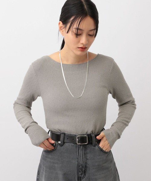 ーーーインナーとしても1枚でも多様にに使える広めのネックがポイントのバレリーナニット。ーーー【デザインと特徴】着心地の良く大人っぽさのあるレーヨンストレッチ素材で、適度な光沢感と厚みがポイントです。ニットのようなカットソーのような印象の、着まわしやすいトップスです。【素材特徴】冬にご好評でしたニットの素材を、春に向けに変更しました。変形カノコから、少しだけ編地を変更し軽さのあるものになっています。【スタイリング】オフィスカジュアルにも最適なコンパクトさ。ワイドパンツ合わせがおすすめです。---------------------------------------------------------《インフォメーション》◆商品のお気に入り登録♡をクリックで気になるアイテムをお気に入り登録していただくと、以下の通知を受け取ることができます。・入荷・再入荷・ラスト一点・セール対象時◆ブランドのお気に入り登録新商品や再入荷、セール、クーポン配布などのお得な情報を受け取ることができますので、是非ご登録ください♪公式Instagram >>> 【@apartbylowrys 】おすすめアイテムや新作情報、" ショップニュース "を更新中! ぜひフォローしてみてくださいね^^