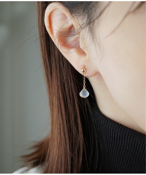 【一番痛くないイヤリング!樹脂ノンホールピアス】 金属タイプから乗り換える人続出!! 優しいつけ心地でありながら、しっかり耳に留まる感じが病みつきに。 樹脂である見た目も思ったほど気にならず、自然にピアスのように見せることが出来ると好評です。 画像のご使用方法をお守りいただくことにより、より長くお使いいただけます。 金属アレルギー対応です。 しずくカットのプチ天然石が、キラキラとさりげなく輝くイヤリングです。 ショートチェーンが揺ら揺ら可愛らしく、また短めに仕立てたことにより、髪に巻き込まれない絶妙なサイズ感に仕上がりました。 普段使い〜特別な日のアクセサリーとしても。 チェーンとワイヤー部分は全て14金ゴールドフィルド素材を使用。 14金ゴールドフィルドは… ・18金に次ぐ高級素材 ・高見え ・ギラギラしない、日本人の肌に地味みの良いゴールド ・100年使えるアンティークジュエリーに使用される素材 ・大人のギフトに最適 【内容】 A.ラピスラズリ(12月誕生石) B.スイスブルートパーズ C.レインボームーンストーン(6月誕生石) D.セイロンムーンストーン E.スモーキークォーツ F.アメジスト(2月誕生石) G.ピンクエピドート H.オレンジムーンストーン I.カーネリアン(8月誕生石) 【素材】 14金ゴールドフィルド、天然石、樹脂 【サイズ】 石サイズ:直径4〜7mm ◆Meach.オリジナルデザインパッケージに入ってのお届けです。(パッケージデザインはリニューアルに伴い変更となる場合がございます。) ▼Meach.<ミーチ>について K14gf(14金ゴールドフィルド)・K10・K18素材を使用した、シンプルなアクセサリーを製作。大人が気軽に身につけられ、さり気なくオシャレを楽しめるデザインを多く展開。金属アレルギーの方にも楽しんでいいただけるアクセサリーを。