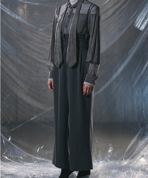 ウエストに大胆なスモッキングが施されたハイウエストパ ンツは、モードで洗練されたスタイルを演出します。肩紐が付いており、フィット感を調整できます。ハイウエストのデザインは、足長効果を与え、スタイリッ シュな印象を与えてくれます。インナーとしては、タイトなニットなどを合わせることで、バランスの取れたスタイリングが完成します。オールシーズン着用が可能で、さまざまなシーンに対応し ます。ピンストライプのデザインが、上品さと洗練された雰囲気 をプラスし、自信とスタイルを引き立てる一着です。【お買いものをお楽しみいただく為に】★商品のお気に入り登録完売カラーの再入荷通知や、ラスト1点の通知、セールの通知も受け取ることができます。★ブランドのお気に入り登録新商品や再入荷など、いち早くブランドのお得な情報を受け取ることができます。【AULA/アウラ】「AULA」は「オーラ」「輝き」という意味の造語です。BLACKを基調とした世界観の中で、光と影のコントラストを表現。ー 透明感や光を反射する素材で魅せる幻想的なオーラ ーー 立体的なディテールで作る陰影 ー流れるようなシルエットや柔らかな素材を使用し、ドレープやラッフル、プリーツなどを取り入れて、服が自由に動くイメージを作り出す。■お使いのパソコンのモニターによって、実物商品とカラーが異なって見える場合があります。誠に申し訳ございませんが、ご理解下さいます様お願いいたします。■当ショップの在庫数は 直営店舗の商品も含まれています。在庫数が日々変動する為、ご注文頂いた時点で在庫が完売になっている場合がございます。 ■サイズ表は、製品の生地や織りなどの特性により、多少の誤差はございます。予めご了承ください。