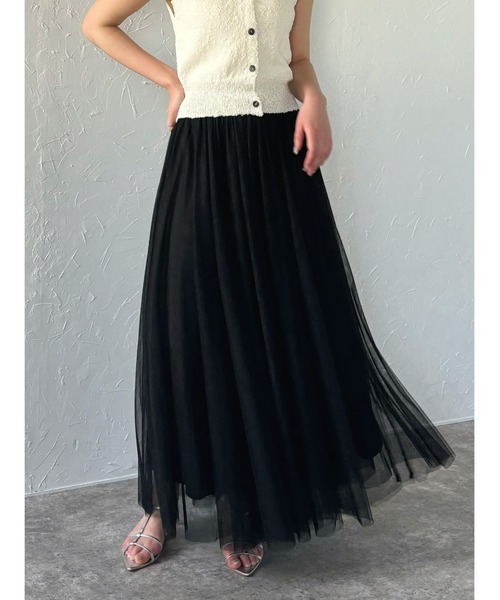 ふんわり広がるボリューム感が可愛いレディライクなチュールスカートマキシ丈のフレアシルエットが魅力の女性らしいチュールスカート。二層に重ねた柔らかいチュールに、ストレッチ性のある裏地付きで安心して着ていただけます。ウエストはゴム仕様なので、リラックス感のある穿き心地。スウェットやニットと合わせてカジュアルにコーディネートするのがおすすめ。チュール素材で存在感があり、様々なデザインのトップスと合わせて着回せるアイテムです。------------------------透け感/あり光沢感/なし伸縮性/なし裏地/あり厚み/薄手------------------------【必ずご確認の上、ご検討ください】 ※商品画像は撮影時の光や角度、お使いのモニター環境により実物の色味と異なって見える場合がございます。※サイト上のカラー・サイズ表記と商品タグのカラー名・サイズ名が異なる場合がございます。※着用、お取り扱いの際は商品についておりますアテンションタグ、洗濯ネームを必ずご確認ください。※生産時期により、色・素材・サイズ感など多少異なる場合がございます。※商品によっては、繊維や染料のにおいが感じられる場合がございます。数日のご使用や陰干しなどで匂いはほとんど感じられなくなりますのでお試しください。※通販の特性上、到着時には畳みシワがついている場合がございます。【Information】 ◆《お気に入り登録》がオススメ◆・「商品のお気に入り登録」で再入荷通知や、ラストの通知、セール通知も受け取ることが出来ます。・「ブランドのお気に入り登録」で新商品や再入荷など、お得な情報を受け取ることが出来ます。