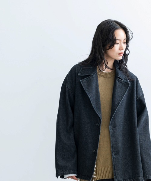 【素材】 11.5オンスのデニム素材なのでオールシーズン着用可能です。 十分なハリコシと重量感があり、上質な印象。軽くウォッシュをかけた濃色具合を出しているので、自分なりに色落ちを楽しめます。 【デザイン・シルエット】 トレンチコートのような大きな襟が特徴のショートブルゾンです。 ルーズでも綺麗なシルエットをキープ出来るサイジングにし、袖のラインをすっきりとした印象に仕上げています。 カジュアルになりがちなデニム素材をシルエット、ディテールにこだわり、綺麗めに仕上げ大人っぽいスタイルに決まります。 裏地:なし 透け感:なし 伸縮性:なし 生地感・厚さ:厚手 ポケット:あり その他仕様:なし 重さ:約880g 【モデル着用サイズ】 MEN:身長183cm 着用サイズL WOMEN:身長175cm 着用サイズL ※撮影場所やライティング、お使いのモニター環境によって色の見え方が異なる場合がございます。 ※商品のカラーは詳細画像の色味をご参照ください。