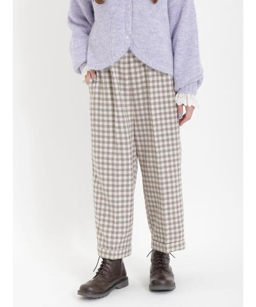 裾のロールアップがヌケ感をプラスするセンタープレスパンツ。 テーパードライクなシルエットと縦ラインを強調するセンタープレスで、レッグラインもすっきりとした印象にみせてくれます。 ウエストはゴム仕様で穿き心地も楽々◎ 合わせるテイストを問わず、カジュアルにもガーリーにもコーディネートが楽しめる1着です。 ※商品画像は、撮影環境やお客様のご利用のPC・スマートフォンのモニター環境などにより実物と色味に差異がある場合がございます。 【その他採寸】 F ウエスト:[ゴム仕様]66cm