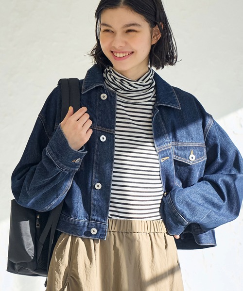 合わせ方で表情がガラリと変わるデニムジャケット。【素材感】・柔らかな生地感。【デザイン・シルエット】・リラックスフィットでモダンに仕上げたデニムジャケット。・すっきりとしたショート丈でバランスが取りやすい。・デザインはスタンダードで仕上げ、誰もが似合う一着に。・同シリーズでホワイトカラー(品番:GSL14040)も展開。【カラー】・ネイビー、サックスブルーの2色展開。【スタイリングポイント】・柄物ワンピースと相性抜群。・ピンストライプのパンツでクールに着こなして。-----------------------------裏地:なし透け感:なし伸縮性:ややあり生地感・厚さ:普通ポケット:ありその他仕様:袖口のボタンでサイズ調節可能季節:春、秋-----------------------------※撮影時の光、お使いのモニター環境によって色の見え方が違う場合がございます。※モデル身長:166cm 着用サイズ:38