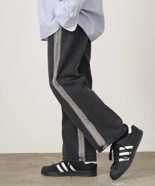【DESIGN】・ストレートシルエットのデニムパンツ。・デニムながらもサイドに加工が施されて ラインパンツのような雰囲気で履くことができます。【STYLE】・古着MIXやトレンドのY2Kファッションに ピッタリのアイテムです。・オーバーシャツやビッグシルエットTシャツを合わせる スタイルがおすすめです。・テックパンツやカーゴパンツなどと合わせるのも◎・メンズでもレディースでも着用できるサイズです。【ROOPTOKYO ZOZOTOWN お買い物ガイド】▼商品をお気に入り登録!完売商品の再入荷やラスト1点の通知、セール開始時にお知らせ!▼"ROOPTOKYO(ループトーキョー)"をお気に入りブランドに登録!新商品や再入荷など、ブランド最新情報をいち早くお知らせ!是非、ご活用いただきお買い物をお楽しみください!