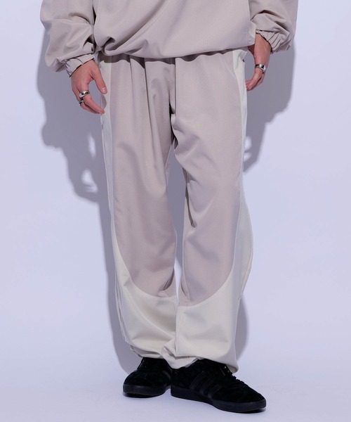【トレンドの90'sスポーツミックス】バイカラーウーブントラックパンツ 【素材】 キメの細かいシャリみと程よい落ち感のあるポリエステル素材を使用しております。 【デザイン・シルエット】 2000年代初頭のスポーツウェアを彷彿とさせる切り替えデザインを今っぽいリラックス感のあるシルエットで表現したトラックパンツです。シーズンレスで着用できるメッシュの裏地とスタイリングや合わせるシューズによってシルエットを変化させられる裾のドローコードで汎用性の高いアイテムです。一見ハードルが高く感じる切り替えデザインも同色系の配色でまとめることで合わせやすく、スタイリングの程よいアクセントとなるデザインで左腿上の刺繍もポイントです。 【カラー】 ナチュラルなトーンのライトグレージュと無機質な印象のチャコール、クールで締まりのあるブラックの3色展開です。 【スタイリングポイント】 同素材のトラックジャケットやアノラックパーカーとのセットアップスタイルはもちろん、ニットやシャツなどのキレイめアイテムとの合わせたミックススタイルもおすすめです。 【セットアップ対応アイテム】 ALL74000 バイカラーウーブントラックジャケット ALL74010 ウーブンハーフジップアノラックパーカー 裏地:あり 光沢感:ややあり 透け感:なし ポケット:あり 伸縮性:無し 生地の厚さ:普通 【モデル着用サイズ】 MEN:身長174cm 着用サイズL 『re_k by JUNRED』 profile: 【recreation】と【key 鍵】【kite 舞い上がる】【kvell 自慢したくなる】による造語『レク バイ ジュンレッド】通称“レク”。 ファッションを楽しむ“鍵”となり、着ることで気分が“舞い上がる”“自慢したくなる”そんな思いを込めたクリエーション。 「おしゃれ」だけではなく、ユースカルチャー、趣味、遊びなど生活の中の“楽しい”に寄り添う、トレンド感のあるクリーンなスタイルを提案。 ※撮影場所やライティング、お使いのモニター環境によって色の見え方が異なる場合がございます。 ※商品のカラーは詳細画像の色味をご参照ください。