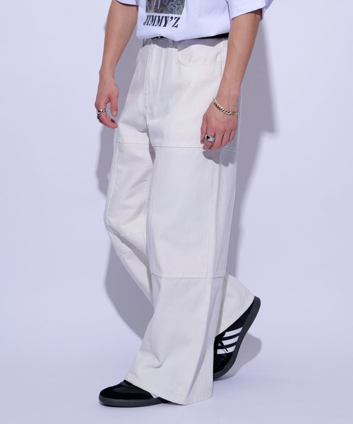 【トレンドのリメイクテイストデザイン】オーバーワイドパッチワークパンツ【素材】10オンスの通年着用できるコットンベースのデニムとツイル素材を使用しております。【デザイン・シルエット】股下からほとんどテーパードをかけていないワイドストレートシルエットでボリューム感のあるブロッキングデザイン5ポケットパンツです。細かいパーツを繋ぎ合わせたようなデザインでブラックデニムの方は、パーツごとに加工感の異なる生地を使用したリメイク感溢れるデザインです。ベルトの裏側には、スピンドルが付いており、あえてルーズに履きたい方は、1サイズ、2サイズアップしたサイズでの着用もしやすい仕様になっております。【カラー】クリーンなトーンのホワイトと濃淡のブラックデニムのパッチワークの2色展開です。【スタイリングポイント】やや長めに設定したレングスなのでワンクッションさせたりロールアップさせた履き方がお勧めです。裏地:なし光沢感:なし透け感:なしポケット:あり伸縮性:無し生地の厚さ:普通【モデル着用サイズ】MEN:身長174cm 着用サイズL『re_k by JUNRED』profile:【recreation】と【key 鍵】【kite 舞い上がる】【kvell 自慢したくなる】による造語『レク バイ ジュンレッド】通称“レク”。ファッションを楽しむ“鍵”となり、着ることで気分が“舞い上がる”“自慢したくなる”そんな思いを込めたクリエーション。「おしゃれ」だけではなく、ユースカルチャー、趣味、遊びなど生活の中の“楽しい”に寄り添う、トレンド感のあるクリーンなスタイルを提案。※撮影場所やライティング、お使いのモニター環境によって色の見え方が異なる場合がございます。※商品のカラーは詳細画像の色味をご参照ください。