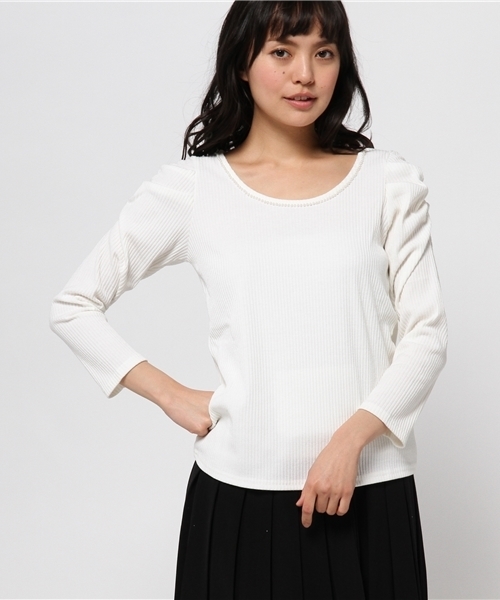 【one after another NICE CLAUP】(ワンアフターアナザーナイスクラップ) WEB限定ポッキリspecial価格 着心地の良いリブが魅力のカットソー。 パールが上品で華やかな印象をプラス。 パワショルのふんわり感がフェミニンにまとまります。 ややタイトなサイズ感がスッキリ着こなせ、スタイル良く見せてくれるのも嬉しいところ。 ノースリーブのワンピースや、サロペットとも合わせやすい。 ショップへお問い合わせの際は下記品番をお伝え下さい。品番:116620610