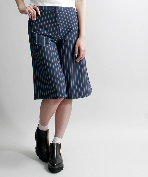 ストライプ柄を落とし込んだガウチョパンツ。裾広がりなワイドシルエットで、スカートのようなルックスが特徴です。バックウエストはゴム仕様なので、リラックスして快適に着用頂けます。ショート丈トップスと合わせたり、あえてロングコートと合わせるような着こなしも今季オススメです。 WEGOの特集ページはコチラ