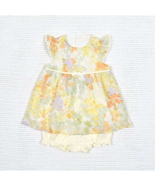 光沢感と清涼感のあるルックスが特徴的なシフォンドビーに、花柄プリントを施した春夏らしい生地感の女の子用ワンピースとブルマのセットです。 薄手で軽く、透け感があり上品なデザインです。 たっぷりギャザーの入ったフリルのお袖と、その先に施したホワイトのチュールレースが可愛いポイント♪ ブルマは表面に凹凸のあるさらっとした手触りで清涼感のあるタック天竺です。 夏を感じる季節にも快適にご着用いただけます。 お色はオレンジの花プリントが元気な可愛さを感じさせるイエロー系と、自然の爽やかさを感じさせるグリーンが入った優しいいピンクの2色です。 タック天竺の丸衿ブラウス(1746-60510)やTシャツ(1755-60510)を合わせてのコーディネイトがおすすめです。 暑くなった夏には1枚でも着用可能なので長くご愛用いただけます。 ※柄の出方は生地の裁断により一点一点異なります。 ※ウエストゴム調節口付きです。 ☆fillot de bebe reduction (フィヨ・デュ・ベベ・ルダクティオン)2024年春夏コレクションテーマ☆ grace de la terre -大地の恵ー 人、自然、土地、文化など、身近なモノ・コトとの繋がりが大切になる今シーズン。 ルダクティオンでは春夏を通して地球の恵の自然をテーマに展開していきます。 光を感じる朝日・大地からサファリ、草花・海からクジラやシェルなどをモチーフに、自然に近い色(花の色・土の色・海の色)など温かみのあるカラーの優しい色合いを中心に展開します。 【fillot de bebe reduction (フィヨ・デュ・ベベ・ルダクティオン)】 ヨーロッパのベビーを意識し、上品で洗練されたシンプルさを大切に新生児服としての機能性、トレンドも採り入れたスタイルを提案します。 ”クラシック”=普遍的な安心感 ”ノスタルジック”=懐かしさからインスピレートするぬくもり 2つのテイストを取り入れ、赤ちゃんの日常的なパリスタイルを表現するブランドです。す。