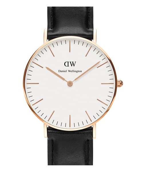 Inspired by muse Daniel Wellington, this classic round watch shows off a timeless case designed to be thin and elegant. Paired with a rich leather strap, the preppy timepiece easily transitions from country club to tennis courts to formal events. With optimal versatility in mind, the interchangeable strap design allows you to swap out the black leather strap for any 18mm Daniel Wellington band. 36mm case; 18mm band width. Buckle closure. Two-hand quartz movement. Mineral crystal face. Stainless steel with rose-gold or silver plating/leather. By Daniel Wellington; imported.