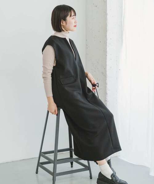 【低身長さんにもオススメ◎】 昨年人気の高かったインナーとセットになったジャンパースカートが再登場!すっきり着られるIラインシルエットの大人なジャンスカです。きれいめな表面感のカットソーで着心地抜群◎厚みがありながら柔らかい素材で、身体のラインを拾わず着膨れ感もないのですっきり着られるのが嬉しいポイント。キーネックで顔周りもすっきり見せてくれます。コーデに迷わず忙しい朝の味方になってくれること間違いなしです♪ 【2024 Spring/Summer】【24SS】 [インナー] Free : 肩幅38cm / 着丈55.5cm / 身幅38.5cm / 袖丈55cm / タートルの高さ7.5cm ※商品画像は、光の当たり具合やパソコンなどの閲覧環境により、実際の色味と異なって見える場合がございます。予めご了承ください。 ※商品の色味の目安は、商品単体の画像をご参照ください。 ▼お気に入り登録のおすすめ▼ お気に入り登録商品は、マイページにて現在の価格情報や在庫状況の確認が可能です。お買い物リストの管理に是非ご利用下さい。 素材感 透け感 : なし 伸縮性 : ややあり 裏地 : なし 光沢 : なし ポケット : あり