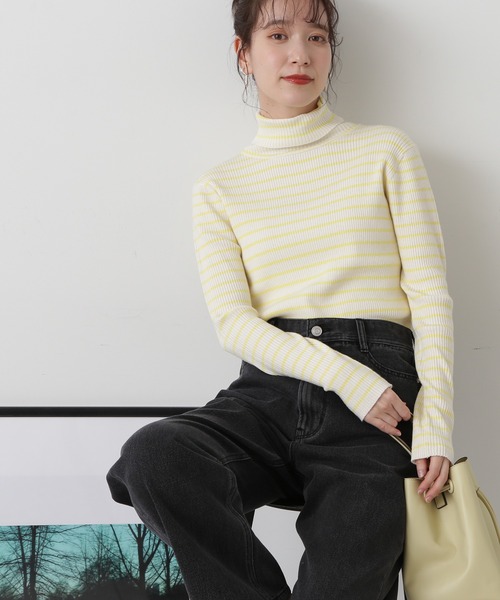 ベーシックに使えるタートルネックのリブニットです。春らしいオフカラーをベースにしたボーダー柄が、スタイリングを明るい印象に見せてくれます。細めのボーダーなので、カジュアル感が強くなり過ぎないのも嬉しい。ボリュームスカート、デニムパンツ、カーゴパンツに裾をINしていただくと、メリハリが効いてバランス良く着られます。**********************透け感:ややあり裏地:なし伸縮性:あり光沢感:なし生地の厚さ:普通**********************●取り扱いについては、商品についている品質表示でご確認ください。●撮影はサンプル商品で行っている為、仕様とサイズが異なる場合がございます。●スタジオ及び屋外で撮影した着用画像は、光の当たり具合やご覧のモニターによって色味が違って見える場合があります。予めご了承ください。●生産時期により色・素材・サイズ感など多少異なる場合がございます。予めご了承ください。≪お買い物をよりお楽しみいただくために≫・「商品のお気に入り登録」再入荷通知や、ラストの通知、セール通知も受け取ることができます。・「ブランドのお気に入り登録」新商品や再入荷など、お得な情報を受け取ることができます。