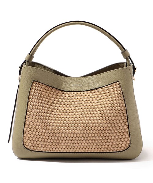 シボ感のあるレザーとストロー素材がコンビになったハンドバッグ。 しっかりとしたマチがあるデザインに加え、センターに仕切りを施し機能性にも富んだ一品です。 取り外し可能なショルダーストラップ付き。 〈LORISTELLA(ロリステラ)〉 2005年にスタートしたイタリアのバッグブランド。 イタリア製ならではの上質で職人のクラフトマンシップを感じるバッグを展開しており、トレンド性のあるカラーや素材を探求しデザインに落とし込んでいます。 ※商品の色味は、商品単体または素材アップ画像をご確認ください 2024SS商品 店舗にお問い合わせの際は、下記の商品番号をお申し付けください。 商品番号:26-03-42-03054