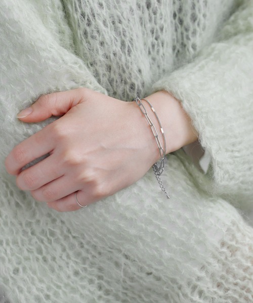「ステンレス素材」のアクセサリーは、金属アレルギーや変色を起こしにくくデイリー使いにぴったりの優秀アイテム。程よいボリュームのチェーンが、手元にアクセントを与えるブレスレット。2連になっているので、これ一つで重ね付けしたようなこなれた印象に。どんなコーデにも取り入れやすいので、デイリーユースにお使いいただけます♪※ATTENTION※■製造・輸送時についた微細なキズが見られる場合がございます。■サイズには個体差があります。上記は不良の対象外となりますので、予めご了承くださいませ。