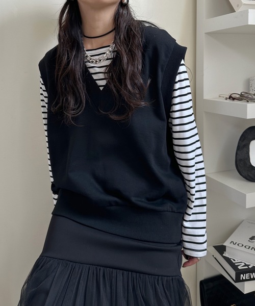 トップス感覚で着用できる便利なベスト 裏毛素材の万能アイテム 〈design&fabric〉 ●しっかりとした素材感の裏毛のオーバーベスト。 ●ベストといってもトップス感覚で着用できる便利さです。 ●袖口はリブ仕様で高見えします。 ●Vネックでレイヤードも可能です。 〈おすすめコーディネート〉 ●これからの季節シャツやTシャツと合わせて着用がおすすめ。 ●夏は1枚でOK! ●上下スウェットで合わせてもパジャマ感にならずおしゃれに着こなせます。 ●1枚あると他の色もきっと欲しくなるプチプラアイテム! #春服 ___________________________________________ 透け感:なし 伸縮性:あり 光沢感:なし 厚さ:厚め 裏地:なし 推奨シーズン:オールシーズン ___________________________________________ Instagram&TikTokも配信中🔗 @uleula_official ZOZOTOWNにないコーデや着回し、新作情報 など随時更新しております。 ぜひチェックしてみてください。 【お買い物をより楽しんで頂くために】 ▼商品のお気に入り登録再入荷通知・ラスト1点通知・セール通知を受け取ることができます。 ▼ブランドのお気に入り登録新商品・再入荷・セール・クーポン配布などお得な情報を受け取る事ができます。 ※商品画像は撮影場所やお使いのモニター環境により色味等異なる場合がございます。 ※画像の商品はサンプルです。実際の商品と仕様・加工などに変更がある場合がございますので、予めご了承ください。 ※お取り扱いに関しましては、商品に付属のアテンションタグをご覧ください。 ※お届け時期に関して遅延等の影響も考え、少し余裕のある設定をさせていただいております。商品ページに記載のお届け時期よりも早いお届けになる場合がございます。予めご了承ください。 【ULEULA/ウルア concept】 自分が自分を一番好きになる なりたい自分になるブランド 愛して愛させれて、年と共に気分も大人へ気取らないからこそいい 毎日を身にまとうことでうるおいとしあわせを