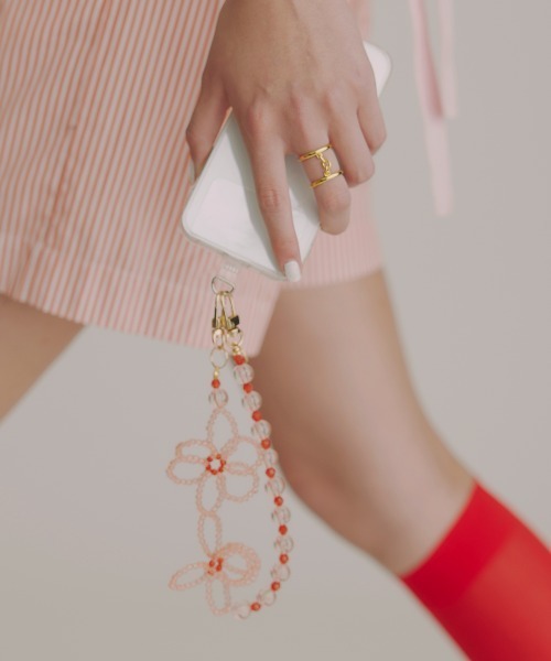 ■POINT涼しげなビーズを組み合わせたモバイルハンドストラップ。お花型に編んだビーズが可愛い、存在感のあるルックスで、手首に通すだけでワンポイントになるアイテム。 両手がふさがらずいつでもサッとスマホが操作が可能に。スマホ本体とカバーの間に差し込んで使えるパーツ付き。※手編みのため個体差が生じます。同じデザインのモバイルショルダーはこちら。フラワービーズモバイルショルダー(商品コード:234-110802)■COLORPINK/SILVER/WHITE※画像の商品は光の照射や角度により、実物と色味が異なる場合がございます。また表示のサイズ感と実物は若干異なる場合もございますので、予めご了承ください。※お取り扱いの際は、商品についている品質表示とアテンションタグを必ずご確認下さい。<<Casselini/キャセリーニ>>1987年にスタートした日本の服飾雑貨ブランド。Be myself / With playfulただ"かわいい"だけじゃないいくつものテイストを取り入れたミックススタイル。わたしらしさをつくるもの。ころころと変わる毎日の気分に寄り添える小物を提案します。<<お知らせ>> ◆商品のお気に入り登録◆ お気に入りアイテムの値下げ・再入荷・在庫1点などの通知を受け取ることができます。 ◆ブランドのお気に入り登録 ◆新商品や再入荷、セール、クーポン配布などお得な情報を受け取ることができます。