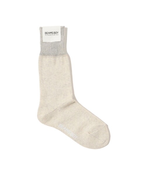 細部までスウェットの袖に近づけた拘りソックス■デザイン昨年大人気だった杢のスウェットの袖口をイメージした〈BEAMS BOY(ビームス ボーイ)〉オリジナルソックスに新色が登場です。スウェットの袖口に見えるよう、しっかりとボディと色ブレさせた太いリブ部分は、長さと色の修正を重ねた絶妙なグレーを採用。さらに袖のリブに見えるよう、ボディとリブの間に1本糸を配し、リブに限界まで近づけ、ステッチ見えさせました。■サイズ約23~25cmサイズ■素材春夏にも着用しやすいよう絶妙な厚みと締め付けが魅力。
