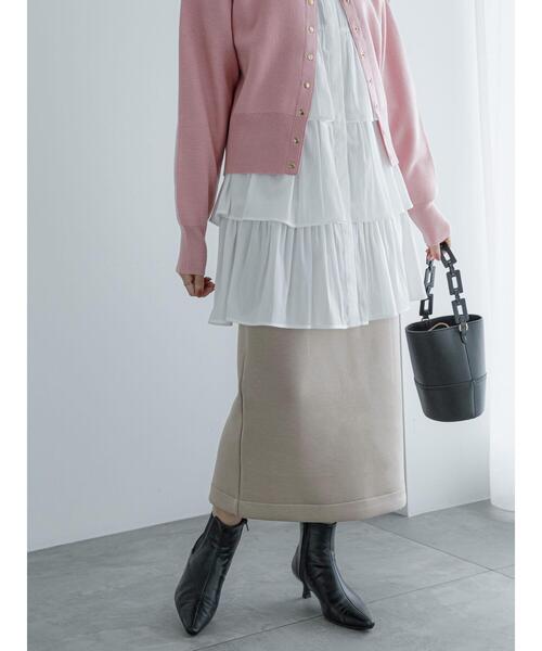 ハリ感のあるダンボール素材で仕立てられたスカート。 すとんとしたタイトシルエットになっており、縦のラインを強調してくれます。 バックスリット入りで、動きやすさを与えてくれるのもポイント◎ カジュアルやきれいめなコーディネートにも取り入れやすいアイテムです。 ※商品画像は、撮影環境やお客様のご利用のPC・スマートフォンのモニター環境などにより実物と色味に差異がある場合がございます。 【その他採寸】 F ウエスト:[ゴム仕様]62cm
