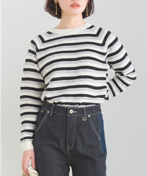 レトロな雰囲気のマルチボーダーが目を惹く!ボーダーニットプルオーバー■DETAILトレンドのレトロ感漂うボーダーのニットプルオーバー。編み地に入れた模様もアクセントになっています。もちもちとした素材で、チクチクしにくく着心地も抜群です。ご自宅でのお洗濯が可能なところも嬉しいポイント◎■COORDINATE一枚着はもちろん、コンパクトすぎないサイズ感なのでキャミワンピやジャンスカのインナーにもぴったり!着回し力抜群な一枚です。…………………透け感…なし厚さ…ふつう伸縮性…あり裏地…なし…………………※撮影環境により、多少実際のカラーと異なる場合がございます。また、携帯やスマートフォン、パソコンなどの画面上と実物では多少色が異なって見える場合がございます。ご了承下さいませ。※濃色品は、過度な摩擦や濡れた状態での摩擦により、色落ち・色移りをする恐れがあります。※この商品は、素材の特性上、洗濯の際に多少の縮みが生じる恐れがあります。洗濯後は形を整えてから干してください。※その他お取り扱いに関しましては、商品に付属のアテンションタグをご覧ください。★商品のお気に入り登録 登録すると、完売しても再入荷時に通知を受け取ることができます。 ほかにもお得な特典があるかもしれません♪ ★ブランドのお気に入り登録 新商品や再入荷などの情報を受け取ることができますので、是非ご登録ください♪