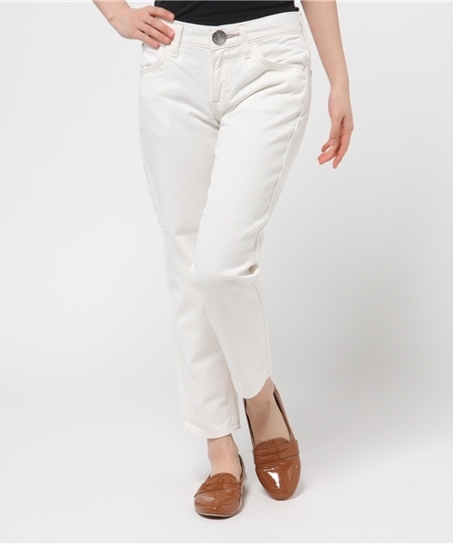 ◇◆Lee×earth◆◇老舗のジーンズメーカーLeeとコラボレーションデニム。今季トレンドのテーパードパンツ。パステルカラーの爽やかなカラー展開。すっきりとしたシルエットは足長効果もありです。柔らかい履き心地でデニム特有のゴワつきがないのも◎