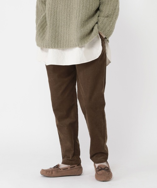 ーーー やわらかなドビー素材を使用したテーパードパンツ。 ひざから裾にかけてすっきり見えるようなシルエットにこだわった一品。 ヒップまわりはゆとりがあり、リラックスした着心地です♪ ストレッチが効いているため締め付け感がなく動きやすいのでデイリーに使いやすい♪ ウエストはゴム仕様、紐でも調節が可能なので様々な体型のかたに履いていただけるアイテムです。 ーーー ワンピースやチュニックのレイヤードスタイルがおすすめ◎ すっきりとしたシルエットなので、オーバーサイズのニットやカーディガンにも♪