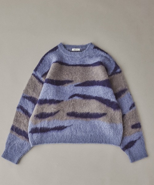 曲線的なボーダーが特徴的なシャギーニットが登場。 ボディはブルーとグレーのボーダーに、 所々に施されたネイビーの波紋のようなデザインが特徴的な1着。 生地は今年のAWのトレンドでもあるシャギー生地を採用しており、 肉厚でふんわりした柔らかい手触りが魅力となっております。 カラーはブルーの1色展開。 ーーーーーーーーーーーーーーーー 透け感:なし 裏地:なし 伸縮性:あり 光沢感:なし 生地の厚さ:普通 ーーーーーーーーーーーーーーーー -Adoon plain- シティーボーイファッションをベースとした、 都会的で遊び心のあるユニセックスブランド ※サイト上のカラー名と、お届け商品に記載されているカラー名が異なる場合がございます。 商品ページカラー名:ブルー → 商品タグカラー名:グレー ※ご覧いただく環境により、実物と色味が異なって見える場合がございます。ご了承ください。 【お買い物をよりお楽しみいただくために】 ▼商品のお気に入り登録(ハートマークをクリック) 完売カラーの再入荷通知や、ラスト1点の通知、セールの通知も受けることができます。 ▼ブランドのお気に入り登録 新商品や再入荷など、いち早くブランドのお得な情報を受け取ることができます。