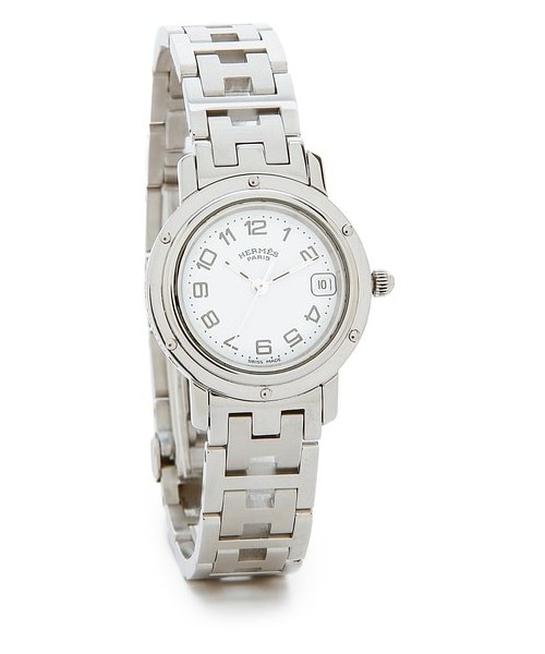 This understated, authentic vintage Hermès watch is detailed with brushed H links along the silver-tone bracelet. The small, stainless steel dial is detailed with classic numerals and a date wheel. Hinged-snap clasp. Stainless steel. Made in Switzerland. Measurements Dial: 1in / 2.5cm Band: 0.5in / 1.2cm Length: 6.25in / 16cm