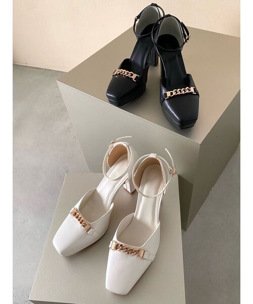 大人な上品ルックが魅力のスクエアトゥパンプス▽デザイン▽足首をホールドするストラップデザインやローヒール仕様など、デイリーに愛用したい快適な履き心地が魅力。厚底ですが前にも厚みを持たせた事で高低差が和らぎ歩きやすいです◎中敷きの下にもっちり柔らかの厚みのある低反発スポンジを使用し、歩いた時の地面との衝撃を抑え、ヒールでも歩きやすい仕様に。素足で抜け感をプラスしたり、ソックスを合わせた今年らしいスタイリングもオススメ。▽カラー▽白・黒の使いやすいベーシックカラー。【スタッフ着用レビュー】スタッフD(普段のサイズ: 24.0cm/足の幅: 9.5cm/甲の高さ: 5.2cm/ふくらはぎ周り:31.5cm)Mサイズ着用でぴったりです!太めのヒールで安定感があり、甲と足首のストラップでしっかり固定されるので歩きやすいです。