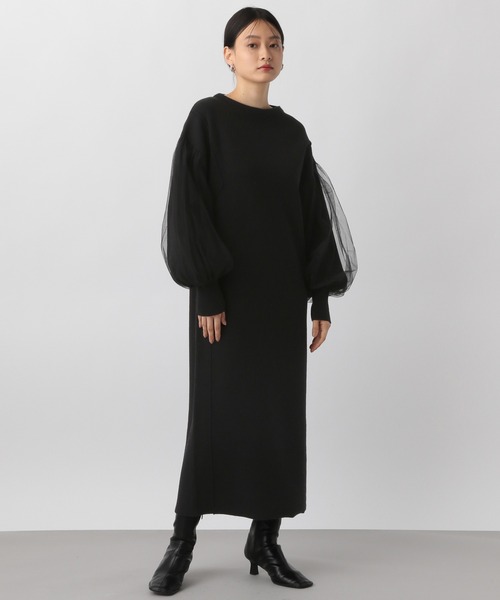 ーーー ソデがチュール重ねのデザインになった、デザインニットワンピース ーーー 【デザインと特徴】 袖チュールとニットの2枚重ねになっているニットワンピースです。 トレンドのチュール素材をドッキングすることで、デザイン性がぐっと増すアイテム。 スッキリとしたボートネックとIラインシルエットで、チュールスリーブとのバランスも◎ フロントの両サイドにラインが入っているので、よりすっきり見えるディテールです。 袖がニットとチュールで2層になっているため、ふわっと立体感が演出出来ます。 【素材特徴】 ・吸湿発熱の素材を使用しています。 室内でも外出時でも暖かく快適に過ごして頂ける素材です。 ・フラットで安定感のあるハーフミラノ編地を使用しています。 スウェット見えするような、しっかりした編地です。 体に沿いすぎることなく、やや張りを持たせてくれる生地感です。 【洗濯可否】 手洗い可能です。 同素材でプルオーバーもご用意しております。 ブランド品番:993990 商品名:ソデチュールドッキングワンピース --------------------------------------------------------- 《インフォメーション》 ◆商品のお気に入り登録 完売していても再入荷時に再入荷通知を受け取ることができますので、是非ご登録ください♪ ◆ブランドのお気に入り登録 新商品や再入荷などの情報を受け取ることができますので、是非ご登録ください♪ 公式Instagram >>> 【@apartbylowrys 】 おすすめアイテムや新作情報、" ショップニュース "を更新中! ぜひフォローしてみてくださいね^^
