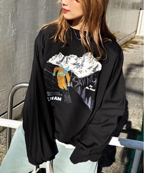 ■デザイン【ユニセックスで着用可】表面の個性的なグラフィックプリントが特徴で、一枚で主役になるプルオーバーが登場です。ラグランスリーブ仕様にして身幅や袖にゆとりを持たせることで、丸みのあるシルエットを表現。インナーとしても合わせやすいように、程よくリラックス感のある絶妙なシルエットに仕上げました。デニムやワイドパンツなどのカジュアルスタイルはもちろん、スカートやミニボトムスと合わせるとトレンド感がアップしておすすめです。■ポイント・友人やカップルでお揃いコーデもおすすめ!!!!・ゆとりのあるサイジングで、ラフな着心地に。・他とはかぶらないデザインで、一枚でお洒落な印象に。■着用サイズ感・モデル:アリーチェ[身長160cm/着用サイズFREE]・モデル:STAFF[身長157cm/着用サイズFREE]■素材・伸縮性:あり・透け感:なし・裏地:なし・光沢感:なし・生地の厚み:薄い※生地寄りの画像が実際の色味と近いものとなります。※ご覧のモニター環境や撮影環境により実際のカラーと異なる場合がございますので画像をご参照の上、ご了承頂けますようお願い致します。店舗にお問い合わせの際は、下記の品番をお伝え下さい。品番:239813000