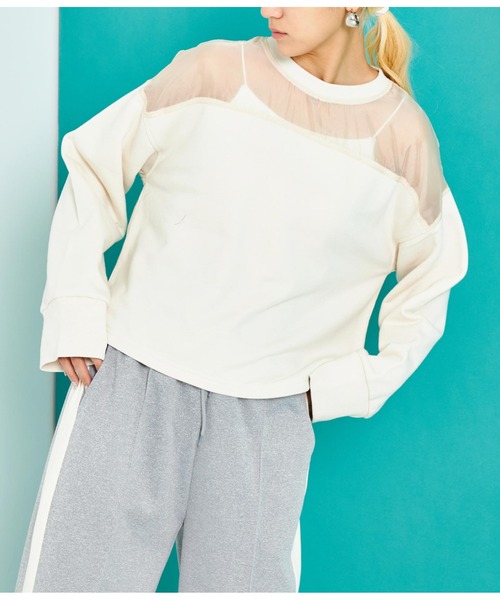 デコルテ部分をオーガンジー素材で切り替えたプルオーバー。 ●透け感のあるオーガンジーで切り替えることで、定番プルオーバーもカジュアルすぎずフェミニンな印象に仕上げました。 ●ぽわんとしたボリューム袖のバルーンスリーブが女性らしい雰囲気で、オーバーサイズのビッグシルエットのゆったりとしたサイズ感が抜け感のある1着です。 ●ロングすぎない程よいミドル丈のスウェットなので、パンツにもスカートにも合わせやすく、1枚でトレンド感が出て着回しのきく1着です。 ※ストレッチあり※裏地なし ※一部透ける素材になっております。 ※アイボリーは若干透けやすい素材になっております。 ※商品のお取扱いに関しましては、商品に付属のアテンションカード、洗濯ネームをご覧ください。 ※モデル着用画像は光の当たり具合で色味が違って見える場合がございます。 ※商品の色味の目安は、色見本画像をご参照ください。 【お買いものをお楽しみいただく為に!】 ▼商品のお気に入り登録 完売カラーの再入荷通知や、ラスト1点の通知、セールの通知も受け取ることができます。 ▼ブランドのお気に入り登録 新商品や再入荷など、いち早くブランドのお得な情報を受け取ることができます。
