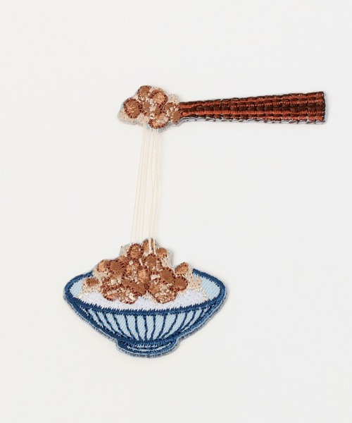 ステッカーでも使える2WAY刺繍ワッペン 刺繍をあえてせずに長いストローク箇所で麺やチーズ、納豆の糸引きを糸で表現したワッペンシール。 服やバッグ布類へのアイロン接着はもちろん、裏面シール仕様なので布以外のノートや手帳などのステーショナリーグッズ、Phoneケースなどに簡単に貼ってお楽しみいただけます! ユニークなアイテムで持ち物を楽しくデコってみませんか?
