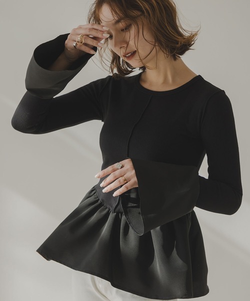 大人気のフレアスリーブトップスがさらに可愛くなって登場♡ 【ディティール】 シンプルなカットソーに女性らしいフレアスリーブ&フレアーヘムデザインをドッキングさせたトップス。 ボディは程よく肉厚のリブ素材で透け感を大幅に改善。コットンメインで肌触り抜群、しかも伸縮性たっぷりなので着脱、着心地共に◎ 異素材切り替えの袖と裾はハリ感のあるしっかりとした布帛地で何もしなくてもきれいなフレア感に仕上がります。 デコルテがきれいに見えるクルーネックが春らしい雰囲気に。 センターシームもさりげないポイントになります。 【スタイリング】 デイリーにはもちろん、オケージョンやおでかけにもぴったりのきれいめアイテム。 クロップドトップスとレイヤードすると、裾からさりげなく見えるフレア感が女性らしさを演出します。 1枚ではもちろん、ジャケットのインナーとしても使えるのでロングスパンで活躍します。 ********************** 透け感:なし ※アイボリーは淡色のインナーをおススメします。 裏地:なし 伸縮性:あり 光沢感:なし 生地の厚さ:普通 ********************** こちらのアイテムは公式Instagram内にて詳細を掲載しております。 ぜひご覧くださいませ。 rectangle公式Instagram / @rectangle_official ※ご覧のモニター環境や撮影環境により実際の商品と多少色味が異なって見える場合がございます。 ご理解の程よろしくお願いいたします。 【お買い物をよりお楽しみいただく為に】 ▼商品のお気に入り登録をおすすめします ♡をクリックしてください。 完売カラーの再入荷や、ラスト1点の通知、 セールの際の通知を受ける事ができます。 ブランドのお気に入り登録もご一緒にお願い致します。