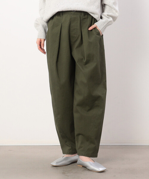 ◆ONIGIRI(おにぎり)のコットンカツラギ テーパードパンツ◆ 《デザイン》 広めのタックをとったヒップまわりがゆったりとしたパンツです。 製品洗いをする事でステッチ部分にアタリが出て、 ナチュラルなヴィンテージ感を出しています。 素材もソフトになり、履き心地が良いです。 脇線を斜めに前パンツまで移動させて、 デザインアクセントにしています。 着用すると丸みのあるシルエットがスッキリと見えて、カッコ可愛いです。 後身頃の中心に切替えを入れる事で ステッチとアタリがデザインアクセントになり、 縦ラインが強調されてすっきり見えが叶います。 後ろのパッチポケットに、 さりげないONIGIRIロゴのピスネーム付きです。 ウエストベルトはオールゴム仕様で 簡単に着脱が出来てリラックス感があります。 …………………… 透け感:なし 厚さ:普通 伸縮性:なし 光沢感:なし 裏地:なし ポケット:あり 洗濯方法:洗濯機洗い可 ………………… #春コーデ #秋コーデ #大人カジュアル ※画像の商品はサンプルとなりますので実際の商品と仕様、加工、サイズが若干異なる場合がございます。 ※こちらの商品はFIVE FOXes独自の採寸方法となっています。 本サイトのサイズガイドと採寸方法が異なる場合がありますのでご了承ください。