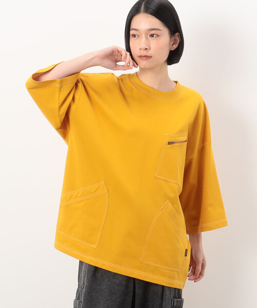 《デザイン》 ワークブルゾンのディテールをベースにしたファスナー付きポケットや腰ポケットが付いた5分袖プルオーバーです。 よりワーク感を出すために、ステッチを配色にしています。 《素材》 [32/-×32/-T/Cインレイ] ポリエステル67%、綿33%のポリエステルが高混率の混紡糸を使用したインレイ素材です。 ポリエステルが高混率に入ることによって、通気性、吸水性に優れ、サラッとした肌触りになります。 《リンクコーデ》 キッズサイズのTシャツ(品番:98-61TG03-204)と、 リンクコーデとしてお召しいただけます。 ※在庫がない場合もございますので、予めご了承くださいませ。 裏地:無し 伸縮性:有り 光沢感:無し 生地の厚み:普通 レディースにもおすすめです。 レディースモデル(身長162 B77 W60 H86 着用サイズ:M) #ユニセックス #ジェンダーレス #SS新作 #春コーデ #夏コーデ #秋コーデ #ポケット #マシンウォッシャブル ※画像の商品はサンプルとなりますので実際の商品と仕様、加工、サイズが若干異なる場合がございます。 ※こちらの商品はFIVE FOXes独自の採寸方法となっています。 本サイトのサイズガイドと採寸方法が異なる場合がありますのでご了承ください。