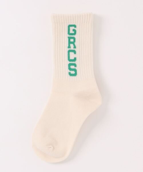 両サイドに今期のテーマ「PARK」とGRCSのジャガードロゴ入りソックス。綺麗な色合いのイエローやブルーは、コーディネートのポイントに。