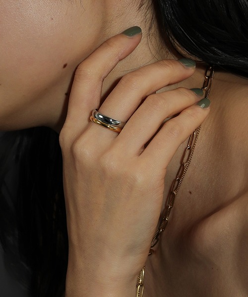 【金属アレルギー対応/サージカルステンレス】 こなれ感を纏ったバイカラーリングがスタイリッシュに指先を輝かせる ■point ・ゴールド×シルバーが魅力的なバイカラーリング ・重ね付け風でこなれた印象へ ・パーティーシーンから普段使いも可能なマルチアイテム ・丸みのあるデザインで柔らかい雰囲気をプラス ・プレゼントやギフトとしても喜ばれるアイテム ■サージカルステンレスについて ・金属アレルギーに対応 ・変色しにくい ・錆びにくく水や汗に強い ・お風呂、温泉、プール、海でも使用できる ※アレルギーが起きにくい素材ではありますが、全ての方にアレルギー反応が出ないことを保証するものではございません。ご了承ください。 ◆◆◆◆◆◆◆◆◆◆◆◆◆◆◆◆◆◆◆◆ 【 voov / ヴーヴ 】 たおやかでありながら強く現代を生き抜く人に 届けたいアクセサリーブランド ◆◆◆◆◆◆◆◆◆◆◆◆◆◆◆◆◆◆◆◆