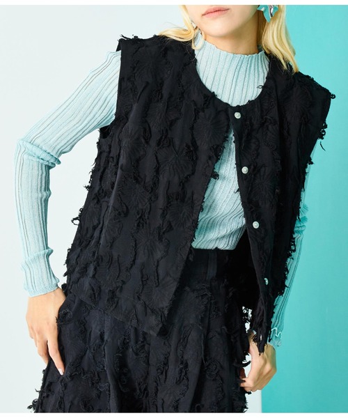毛足の長いフリンジジャガードが特徴的なベスト。 ●フロントはボタン付きのため開けて着ることも可能で、様々な着こなしが楽しめます。 ●表情豊かなジャガード生地がコーデに華やかさをプラス。 ●リブタートルネックやシアートップスなどタイトなシルエットのインナーと合わせると好バランス◎ ●同素材を使用した【フリンジ ジャガード ワイドパンツ】とセットアップでの着用もおススメです。 ※ストレッチなし※裏地なし ※生地のデザイン上、実際の商品と画像とで柄の配置が異なる場合がございます。予めご了承ください。 ※商品のお取扱いに関しましては、商品に付属のアテンションカード、洗濯ネームをご覧ください。 ※モデル着用画像は光の当たり具合で色味が違って見える場合がございます。 ※商品の色味の目安は、色見本画像をご参照ください。 【お買いものをお楽しみいただく為に!】 ▼商品のお気に入り登録 完売カラーの再入荷通知や、ラスト1点の通知、セールの通知も受け取ることができます。 ▼ブランドのお気に入り登録 新商品や再入荷など、いち早くブランドのお得な情報を受け取ることができます。