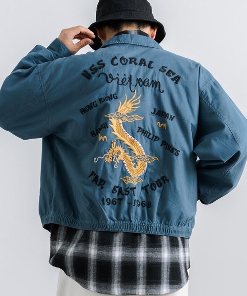 前後の刺繍がアクセント!スタイリングの主役になるスーベニアベトナムジャンパー/ベトジャン。 耐久性もありながら硬すぎず、柔らかいコットン生地で着心地の良さは抜群。 シャツのようにサッと羽織るだけで気軽にアメカジスタイルが楽しめるアイテムです。 ■ 前後の刺繍がアクセント 「ベトジャン」とは、1960~1970年代のベトナム戦争時に駐留していた米軍兵士が スーベニア(記念・お土産)の為に、現地で刺繍を施したジャケットのこと。 実物をイメージした手振り風刺繍で、前身頃には龍と福、バックにも龍の刺繍を配置。 肌寒い時期にはプルオーバーパーカーとのレイヤードスタイルもオススメ◎ シャツのようにサッと羽織るだけで気軽にアメカジスタイルが楽しめるアイテムです。 ■ 柔らかくしっかりとしたコットン生地 耐久性もありながら硬すぎず、柔らかい生地で着心地の良さが抜群です。 薄手なので、季節の変わり目に重宝するライトアウターとして活躍間違いなし! またUSED感ある加工を加えた生地感で、古着のような風合いに仕上がっています。 ■ 実用性のあるディテール フロントはファスナー仕様で、スムーズな着脱が可能です。 サイドポケットは、スマートフォンがすっぽり収まる適度な深さ。 裾はゴム仕様で、きゅっと絞られたメリハリのあるデザインに。 ■ ユニセックスアイテム カジュアル、古着ミックス、アメカジ、韓国系などスタイルを問わない万能アイテム。 メンズ・レディースを問わない男女兼用の対応商品で、プレゼントにもオススメ。 ペアやカップルコーデのお揃いにも最適で、家族でシェアしたりと幅広く活躍します。 【KRIFF MAYER/クリフメイヤー】 アメリカンカジュアル(アメリカ西海岸)をベースに現代のトレンドをMIXさせた古着感覚のデイリーウエア。 古着が持つ特有の色合いやヤレ感、そして古着が作られた背景(カルチャー)を感じさせるデザインや プリント柄に現代のトレンドとクリフメイヤー独自の切り口でミックスしたスタイルです。 ベーシック、かつオリジナリティーあふれる新しいアメリカンデイリーウエアとして、現代を生きる人々に提案します。 ■着用コメント ・モデル RYO:身長175cm / 体重58kg 着用サイズ:L 着丈:ウエストくらいまでの短めの丈感でした。 肩幅:程よくゆとりが残るジャストサイズでした。 身幅:中にカットソーで窮屈感はありませんでした。 ・スタッフA:身長165cm / 体重52kg / 普段S-M着用 着用サイズ:M 着丈:短すぎることなく丁度良いショート丈でした。 肩幅:中に薄手のカットソーで、腕周りにも余裕がありました。 身幅:前を閉めてもタイトさはありませんでした。 ・スタッフB:身長180cm / 体重64kg / 普段XL着用 着用サイズ:XL 着丈:ウエストくらいまでのスッキリ丈でした。 肩幅:前を閉めても、肩周りが突っ張ったりはしませんでした。 身幅:中にTシャツでジャストなサイズ感でした。 【お買い物をお楽しみいただく為に!】 ▼商品のお気に入り登録 完売カラーの再入荷通知や、ラスト1点の通知、セールの通知も受け取ることができます。 ▼ブランドのお気に入り登録 新商品や再入荷等、いち早くブランドのお得な情報を受け取ることができます! ※画像の商品は光の照射や角度、お使いのモニター環境により実物と色味が異なる場合がございます。