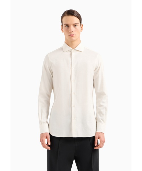 【エンポリオ アルマーニ】シャツ コットン製 オールオーバージャカード ロゴレタリング